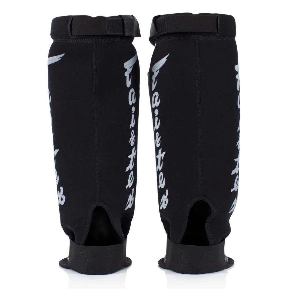 Fairtex shin pads are constructed from synthetic rubbers that are produced by polymerization of chloroprene with good chemical stability which maintains flexibility throughout its lifetime.