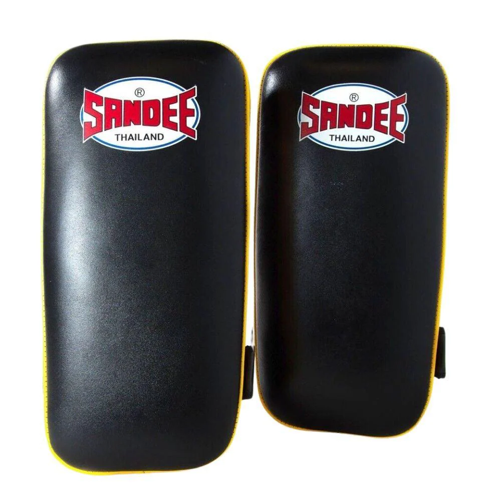 Manufactured using premium grade cowhide leather these Sandee kick pads feature an extra thick layer of cloth fibre webbing and high-density latex foam for ultimate shock absorption which causes minimum stress.